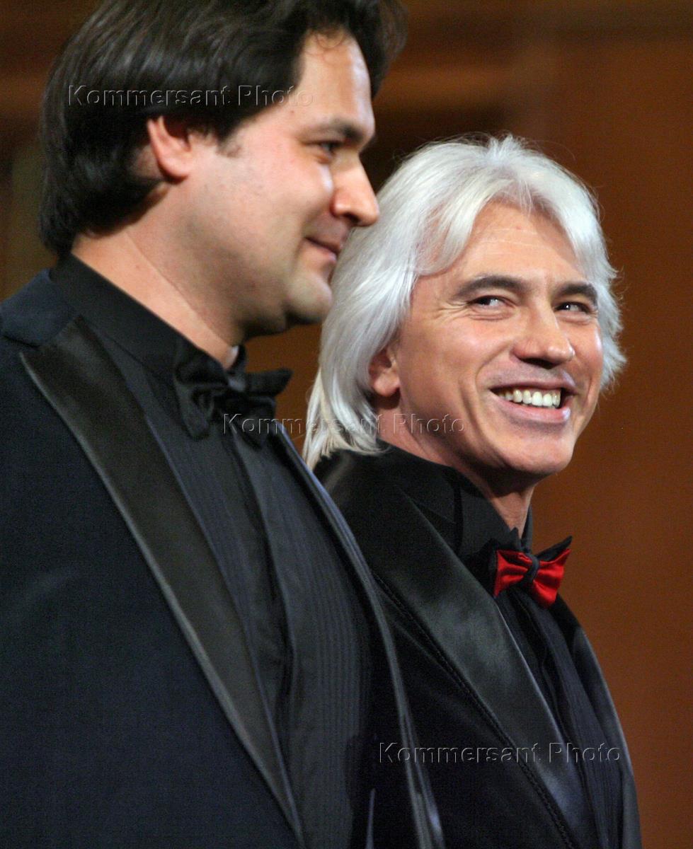 Оперный певец Дмитрий Хворостовский (баритон) (слева) во время выступления в сопровождении…