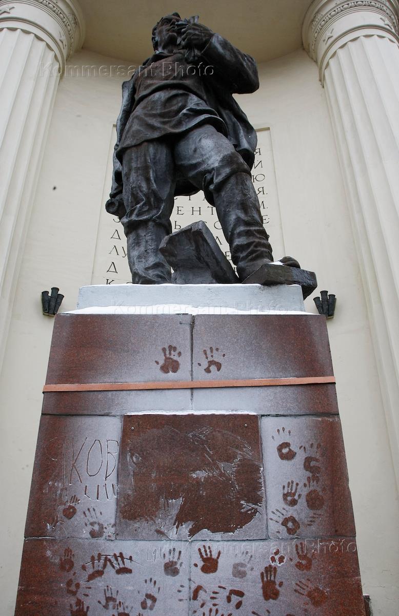 Виды Москвы. Скульптура "Дружинник" работы А.Е.Зеленского у наземного вестибюля станции метро…