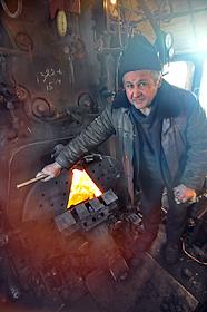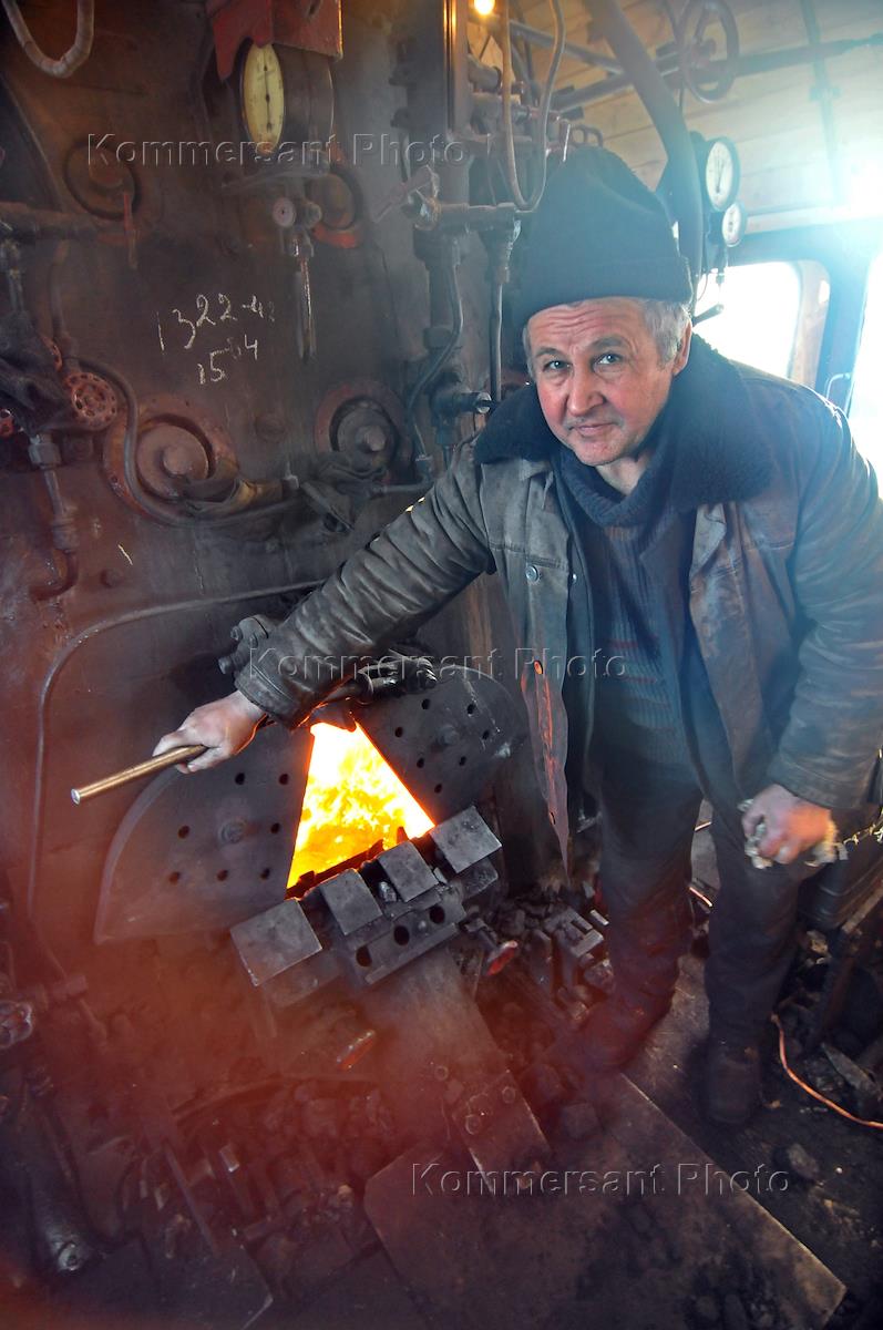 Машинист ретропаровоза, во время путешествия паровоза по малому железнодорожному кольцу Москвы.