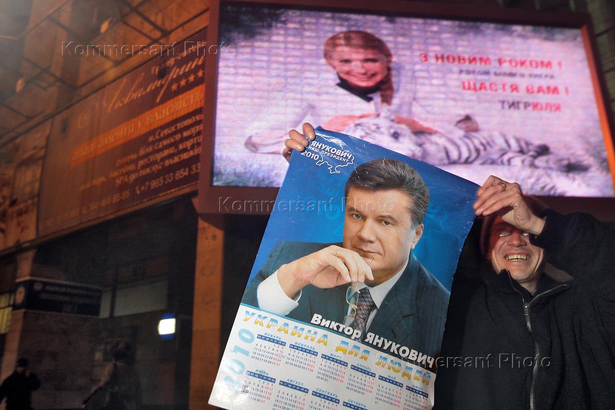 Выборы президента Украины. Предвыборная агитация на улицах Киева. Календарь с портретом кандидата в…