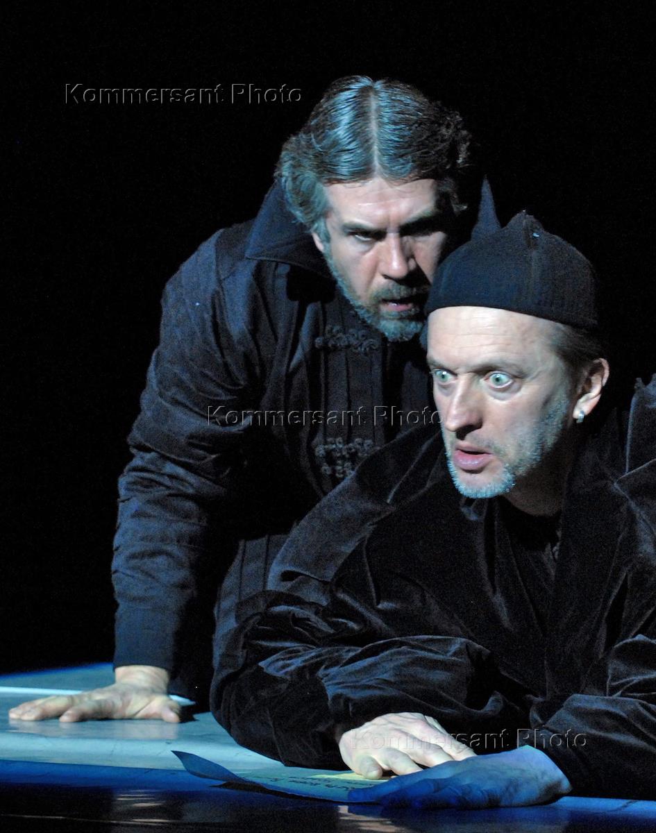 Актеры Александр Яцко (слева) и Виктор Сухоруков (справа) во время спектакля "Царство отца и сына"…