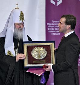 Патриарх Московский и Всея Руси Кирилл (слева) и президент России Дмитрий Медведев (справа) на X…