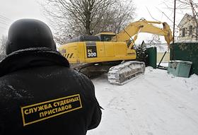 Снос домов в поселке "Речник" на территории охраняемого парка "Москворецкий". Сотрудник Службы…