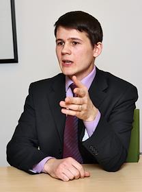 Старший аналитик компании "Кредитмарт" Андрей Романов во время интервью в бизнес-центре…