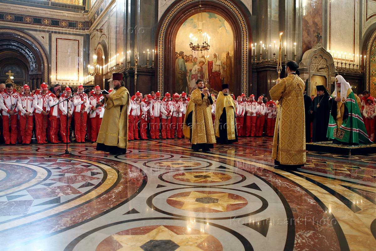 Встреча Святейшего Патриарха Кирилла с Олимпийской сборной России, в Храме Христа Спасителя.