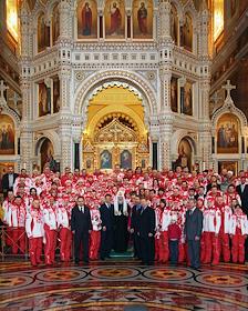 Встреча Святейшего Патриарха Кирилла с Олимпийской сборной России, в Храме Христа Спасителя.