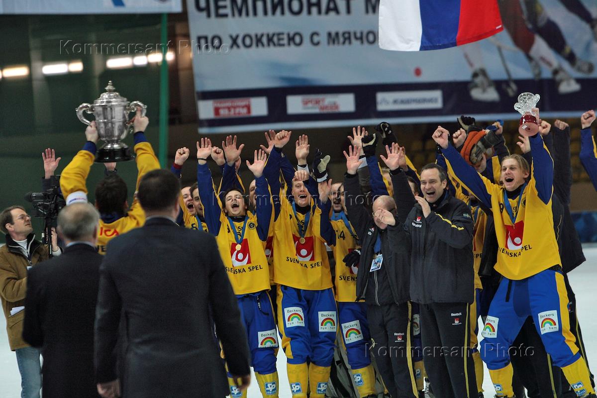 Финал чемпионата мира по хоккею с мячом 2010. Матч между сборными командами России и Швеции прошел в…