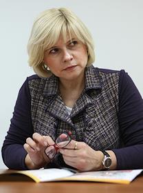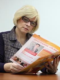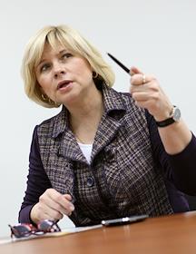 Пресс-секретарь компании "М-Видео" Надежда Киселева во время интервью в бизнес-центре "Новь".