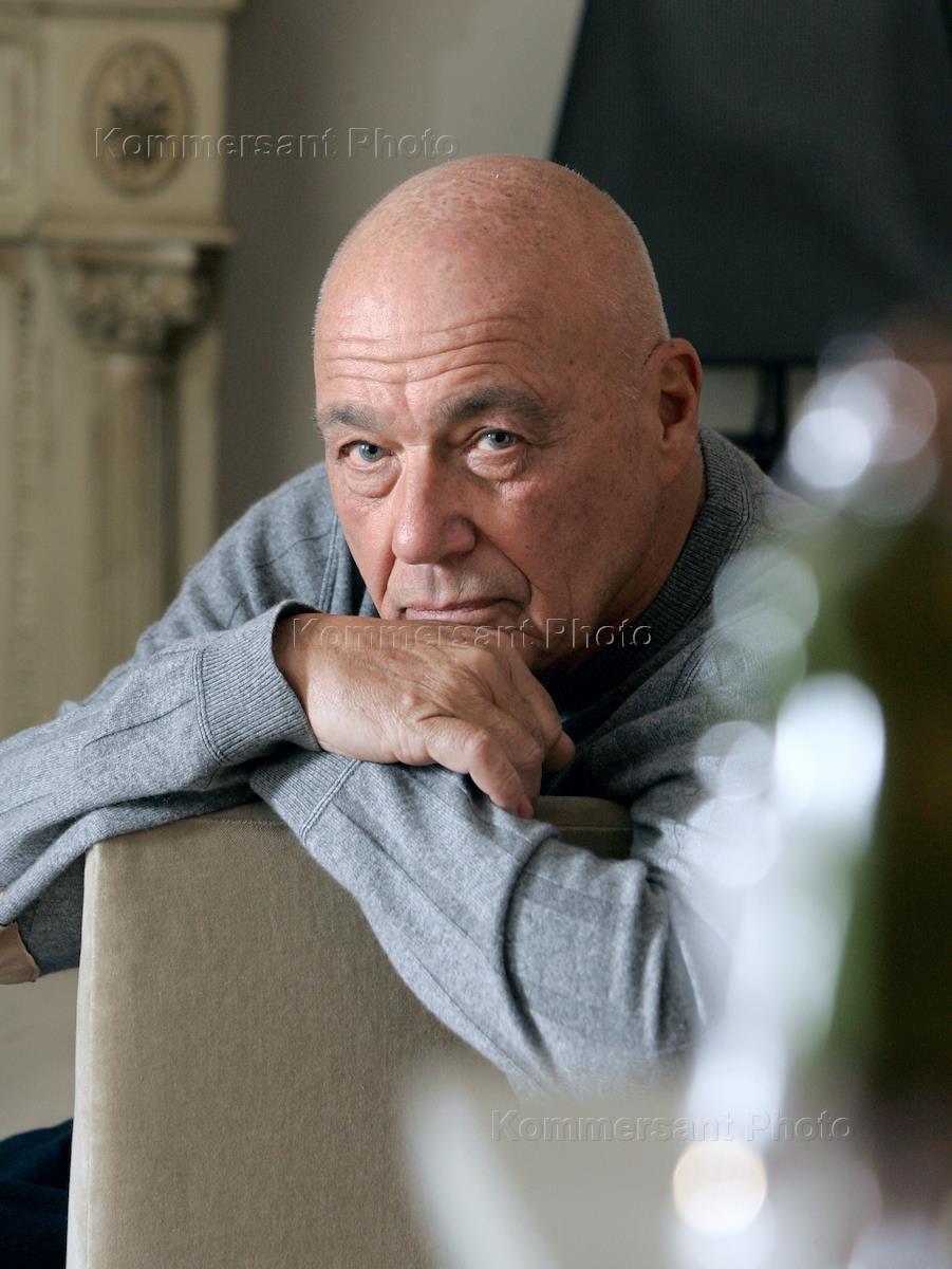 Тележурналист Владимир Познер во время интервью.