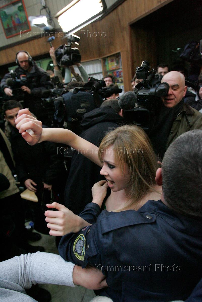 Столкновение демонстрантов с милицией во время акции протеста, организованной участницами…