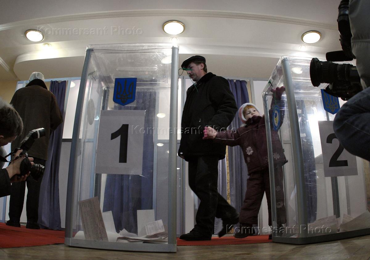 Второй тур выборов Президента Украины. Голосование кандидата в Президенты Виктора Януковича на избирательном участке.
