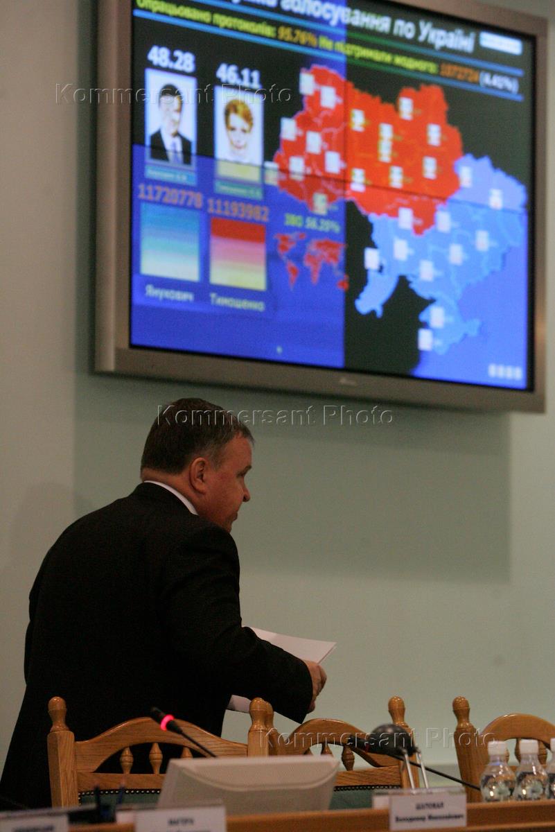 Председатель Центральной избирательной комиссии Украины (ЦИК) Владимир Шаповал после оглашения…