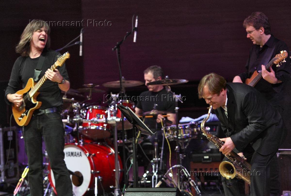 Джазовый гитарист Майк Стерн (слева) и саксофонист Игорь Бутман (справа) во время выступления на…