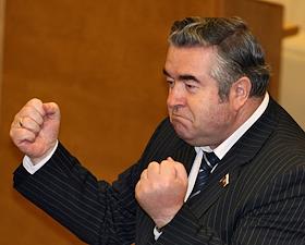 Депутат Государственной думы России, певец Николай Расторгуев (справа) во время думского заседания.