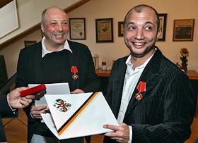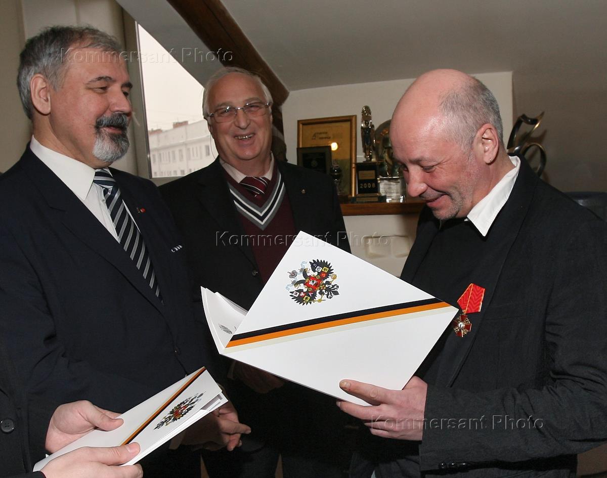 Светская жизнь Награждение шеф-редактора ИД "Коммерсантъ" Андрея Васильева и генерального директора ИД "Коммерсантъ" Демьяна Кудрявцева представителями Российского императорского дома орденом Святой Анны третьей степени, в ИД "КоммерсантЪ".