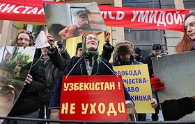 Пикет в поддержку узбекской журналистки Умиды Ахмедовой, у посольства Узбекистана в России.