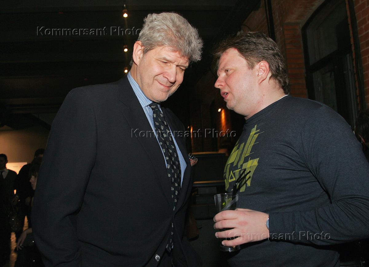 Журналист Сергей Пархоменко (слева) во время церемонии открытия клуба "КоммерсантЪ" на территории…