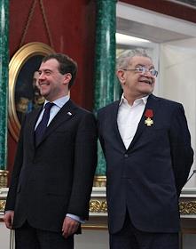 Президент России Дмитрий Медведев (слева) наградил писателя Фазиля Искандера (справа) орденом "За…