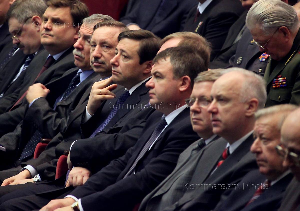 Справа налево: министр обороны России Анатолий Сердюков, председатель Счетной палаты России Сергей…