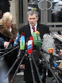 Адвокаты Людмила Айвар (слева) и Игорь Трунов (справа) отвечают на вопросы журналистов после…