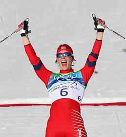 XXI Зимние Олимпийские игры в Ванкувере. Норвежская лыжница Марит Бьорген, победившая в дуатлоне на…