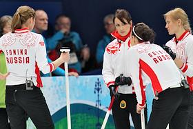 XXI Зимние Олимпийские игры в Ванкувере. Женская олимпийская сборная России по керлингу во время…