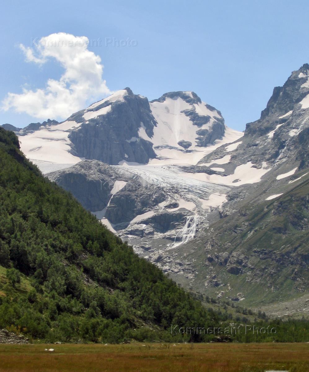 Виды Западного Кавказа. Ущелье Мырды, ледник большой Кичкинекол.