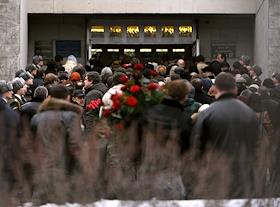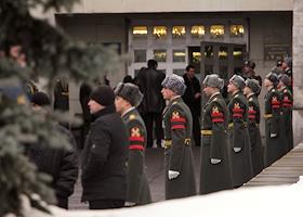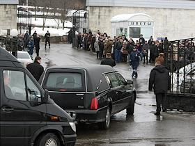 Прощание с актером Владиславом Галкиным в ритуальном зале Троекуровского кладбища.
