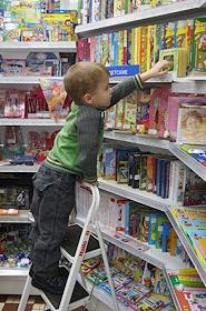 Магазин периодической печати компании "Сейлс". Ребенок с детским журналами у стеллажей.