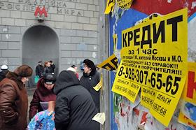Жанровая фотография. Объявление о кредите на столбе у станции метро "Проспект Мира".