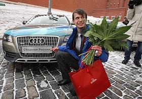 Скелетонист Александр Третьяков на церемонии вручения ключей от автомобилей Audi российским…
