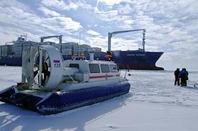 Светская жизнь Спасатели поисково-спасательного подраздееления "Берег" Северо-западного регионального управления МЧС России с помощью судна на воздушной подушке проводят мониторинг Финского залива чтобы предупреждать рыбаков-любителей об опасности. Рыбаки ловят рыбу возле открытых трещин в ледовом покрове или у взломанного ледоколами Морского канала - главного фарватера, по которому суда проходят в порт Санкт-Петербург.