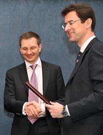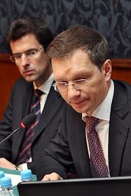 Генеральный директор ОАО "Агентство ипотечного жилищного кредитования" Александр Семеняка (слева) и…
