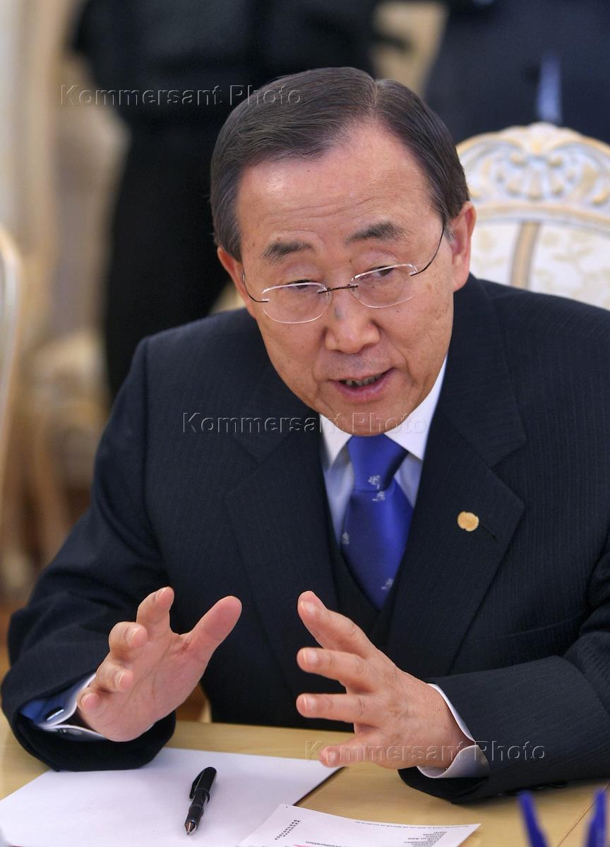 Генеральный секретарь ООН Пан Ги Мун (слева) на церемонии подписания совместного заявления о…