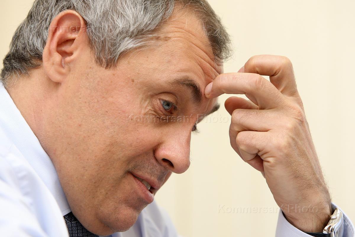 Экономика и бизнес Председатель Совета директоров группы компаний «Монарх» (сеть магазинов обуви "Монарх"), продюсер «Кинокомпании Телесто» Ярослав Живов во время интервью.