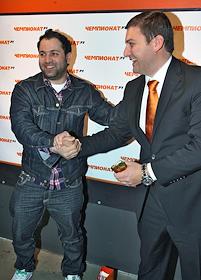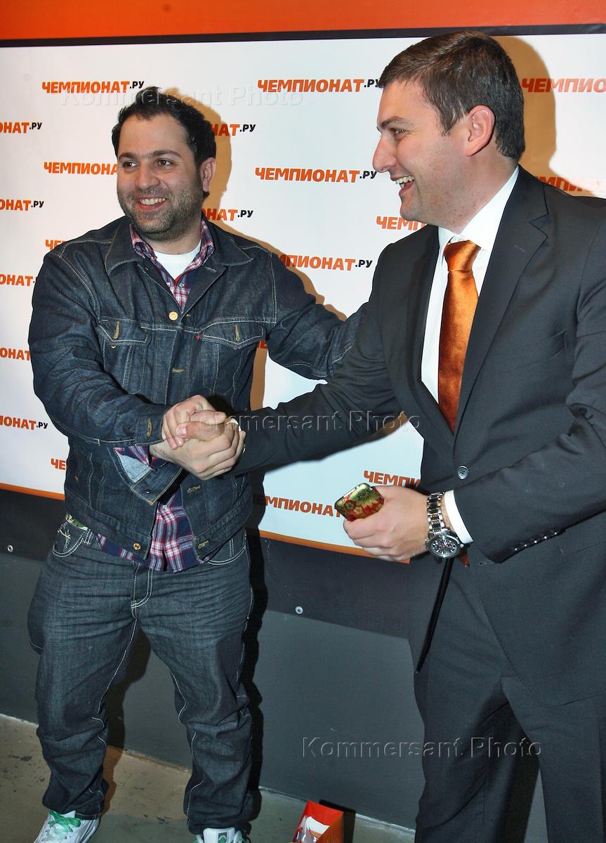 Резидент программы "Комеди Клаб" Таш Саркисян (слева) на праздновании пятилетия сайта Championat.ru…