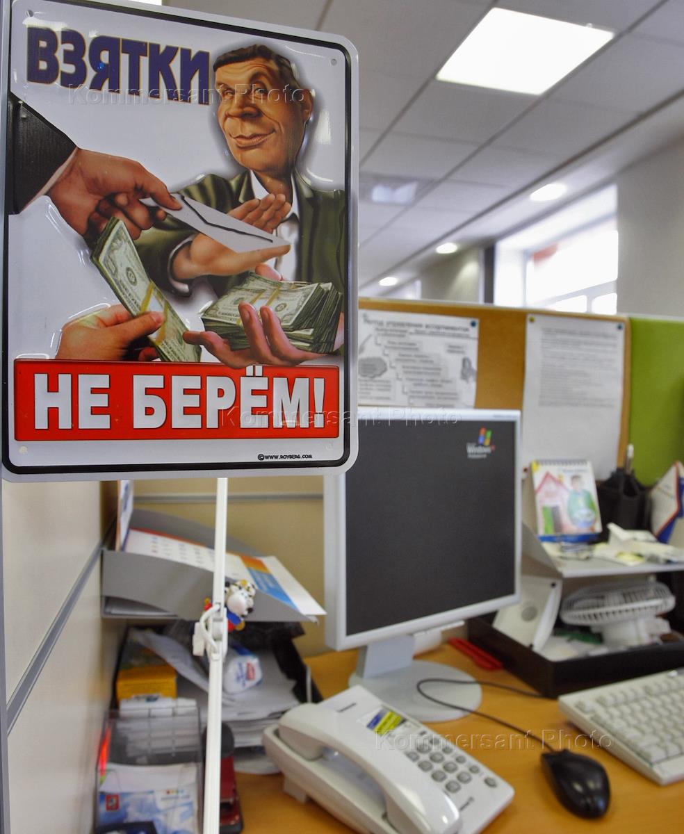 Интерьер внутренних служебных помещений компании "Детский мир". Плакат "Взятки не берем!".