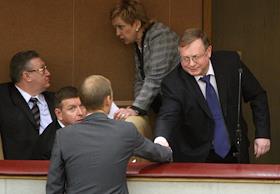 Председатель Государственной думы России Борис Грызлов (в центре) на пленарном заседании Госдумы.
