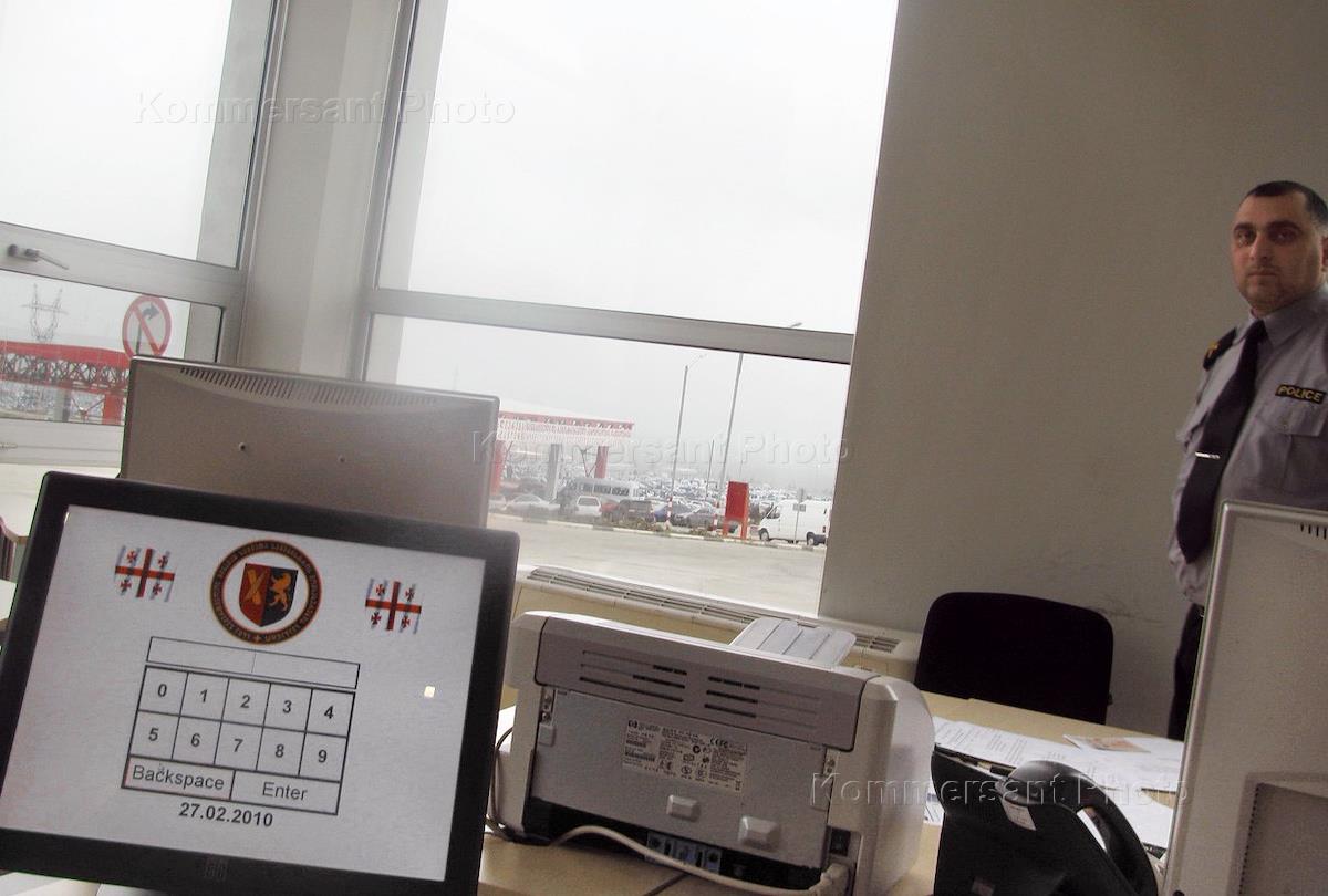 Офис полицейского управления Грузии. Заставка на мониторе компьютера "Выбор языка :английский,…