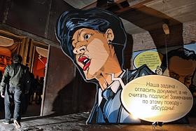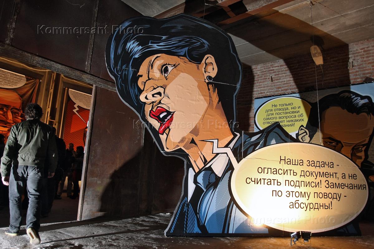 Культура Открытие выставки "Весь «Процесс» в одном «Флаконе»: комиксы художника Александра Котлярова про суд над М. Ходорковским в виде мультимедийной инсталляции Антона Литвина, на дизайн-заводе "Флакон".