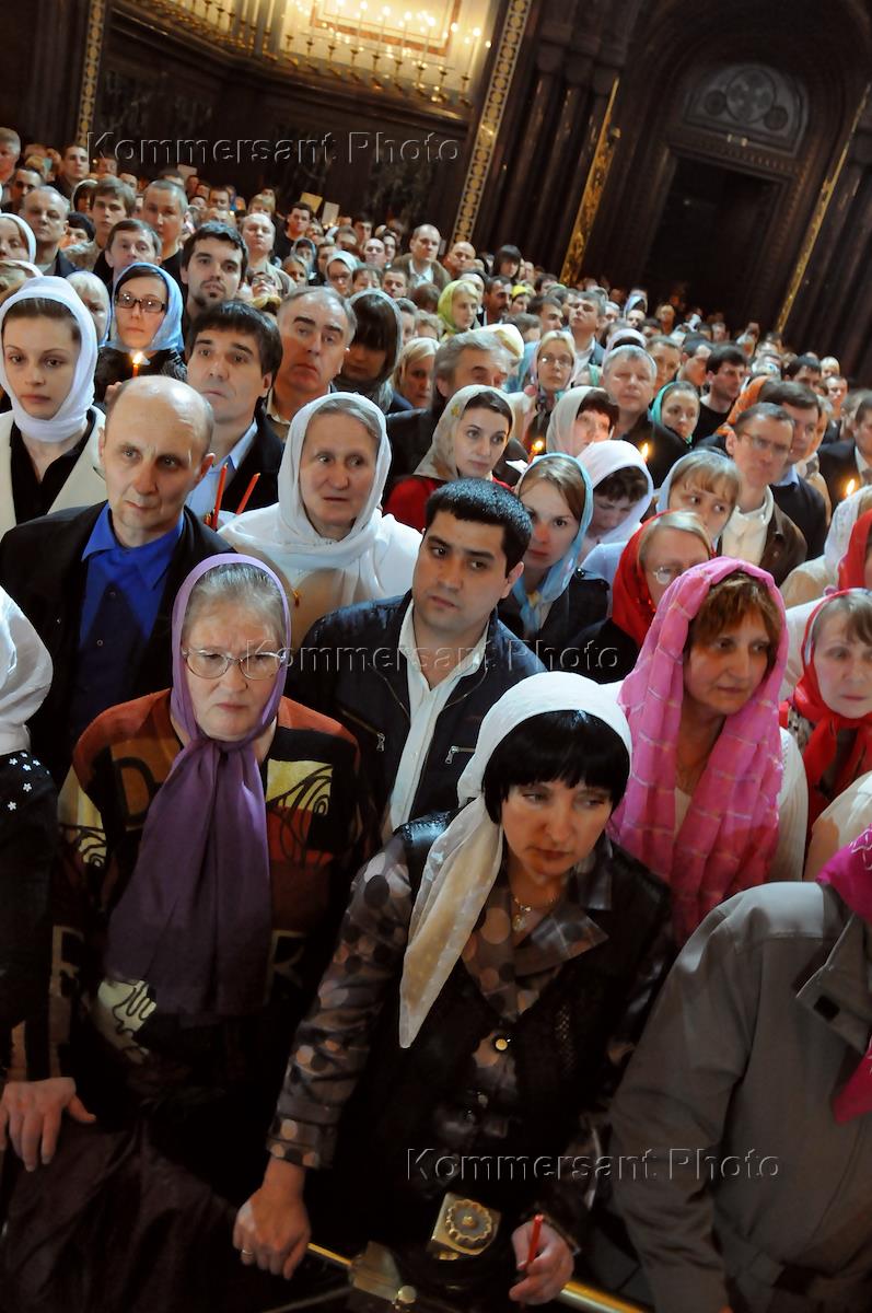 Мэр Москвы Юрий Лужков (второй справа) на пасхальном богослужении в храме Христа Спасителя.
