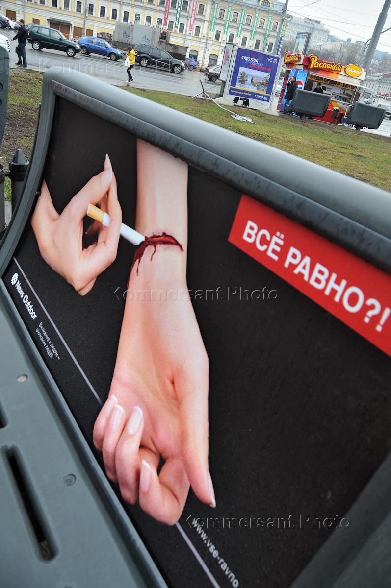 Социальная реклама, направленная на борьбу с курением, на улицах Москвы.