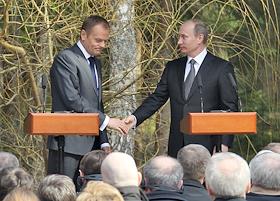Премьер-министр Польши Дональд Туск (слева) и председатель правительства России Владимир Путин…