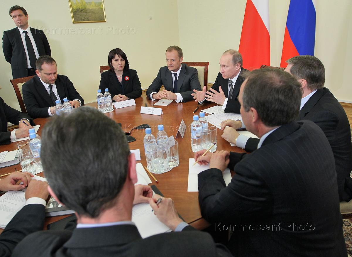 Председатель правительства России Владимир Путин (в центре) и премьер-министр Польши Дональд Туск…