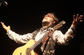 Лидер группы "Аквариум" Борис Гребенщиков во время выступления в спорткомплексе "Юбилейный".
