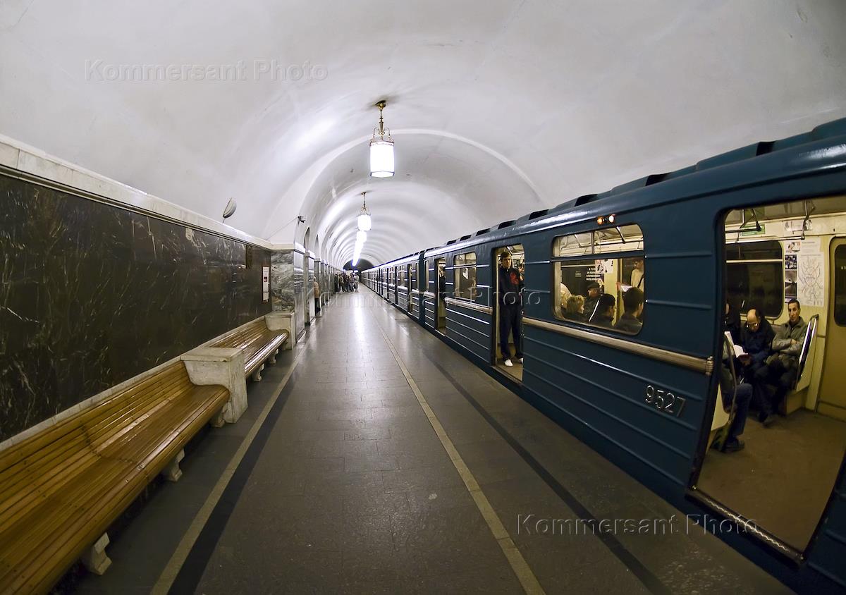 Поезд у платформы станции метро "Парк культуры - кольцевая".