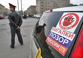 Акция протеста автомобилистов против автомобилей со спецсигналами ("мигалками"), на Кутузовском проспекте.