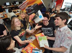 Сотрудники за работой в студии дизайна "Медиакрафт" (Mediacraft).