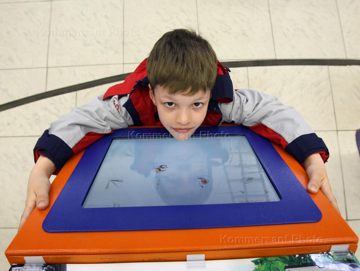 Мальчик у платежного терминала в магазине "Ситилинк".
