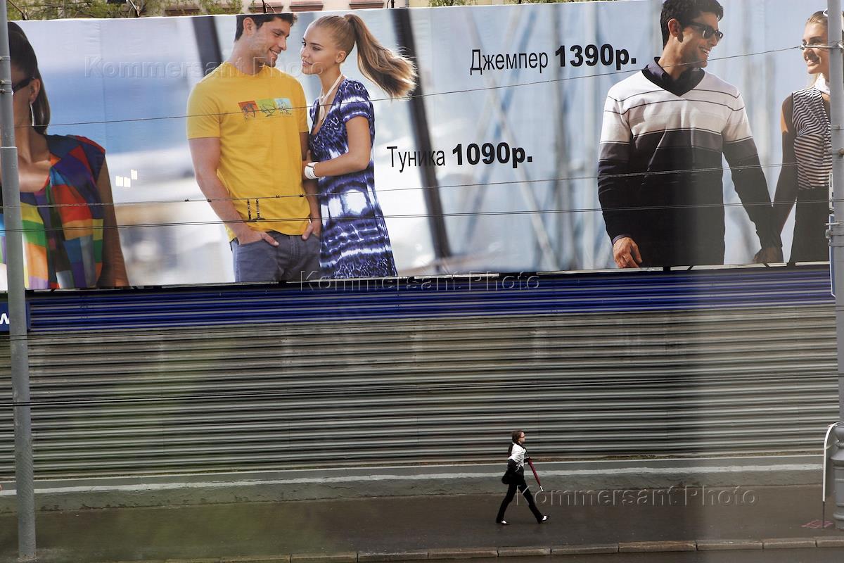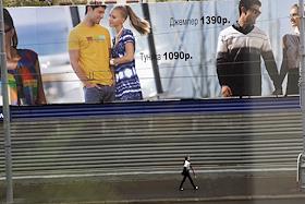 Жанровая фотография. Рекламный плакат на ограде строительной площадки.